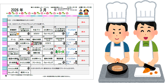 地域活動支援センターは、「憩いの場を見つけたい」「同じ障がいをもつ仲間を見つけたい」「日中どこか行く場所、することを見つけたい」「体力を身につけたり、生活リズムを整えたい」というような、さまざまな目的にあった利用ができます。